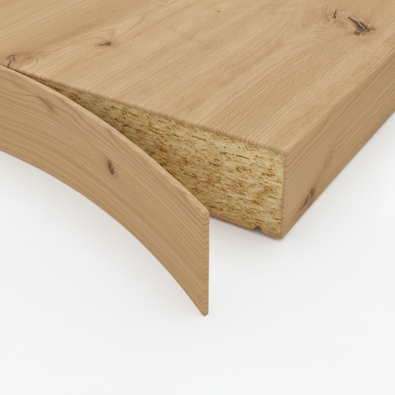 Díky vysoké odolnosti vůči nárazům, vlhkosti a teplu zajišťuje dlouhodobou trvanlivost a profesionální výsledek. Hrana se dodává bez lepidla, což umožňuje přizpůsobit montáž podle konkrétní potřeby.