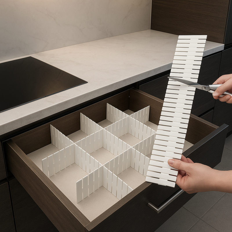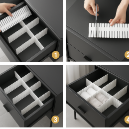 Už žádný nepořádek! Tato sada organizérů rozdělí vaši zásuvku do jasně definovaných sekcí, takže každá položka bude mít své místo. Už nikdy nebudete zoufale hledat ponožky, šperky, kancelářské potřeby nebo drobné kuchyňské náčiní. S těmito organizéry bude každý kousek přesně tam, kde má být.