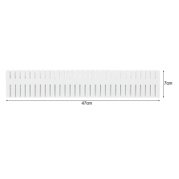 Jedna velikost nesedí všem? Žádný problém! Organizéry můžete snadno přizpůsobit velikosti vaší zásuvky. Díky rozměrům 47 cm x 7 cm se efektivně přizpůsobí různým potřebám, přičemž jejich flexibilita zaručuje, že vždy dokonale padnou.