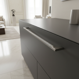 Designová úchytka INDUST v elegantním provedení ušlechtilá ocel mat přináší moderní industriální styl v prémiové saténové úpravě. Díky výraznému rýhovanému (knurled) povrchu působí luxusně, technicky a zároveň nabízí velmi pohodlný úchop.
