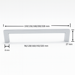 Úchytka ERON je dostupná v různých délkách, abyste ji mohli přizpůsobit každému typu dvířek nebo zásuvek.