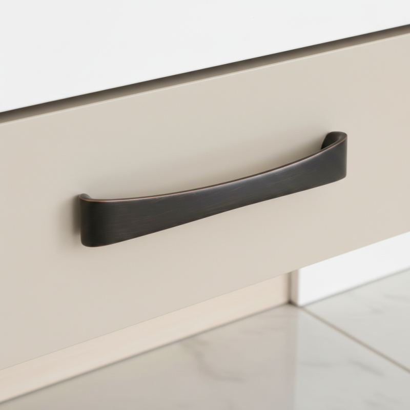 Nábytková úchytka VITTO v elegantním provedení hnědá patina broušená vyniká jemně oblým tvarem a sofistikovaným povrchem s patinovým efektem. Tento design dodává nábytku teplý, luxusní charakter a skvěle zapadne do klasických, rustikálních i moderních interiérů.