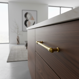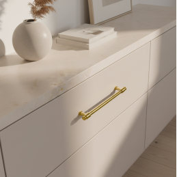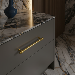 Elegantní kovová úchytka v luxusním zlatém lesklém provedení, která dodá nábytku nadčasový a reprezentativní vzhled. Vhodná do kuchyní, koupelen, šaten, komod i jiného interiérového nábytku v moderním i klasickém stylu.