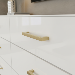 Elegantní nábytková úchytka ZETA ve zlatém provedení je ideální volbou pro moderní i klasické interiéry. Její čistý, hranatý design dodává nábytku luxusní a nadčasový vzhled a zároveň zajišťuje pohodlné a pevné uchopení.
