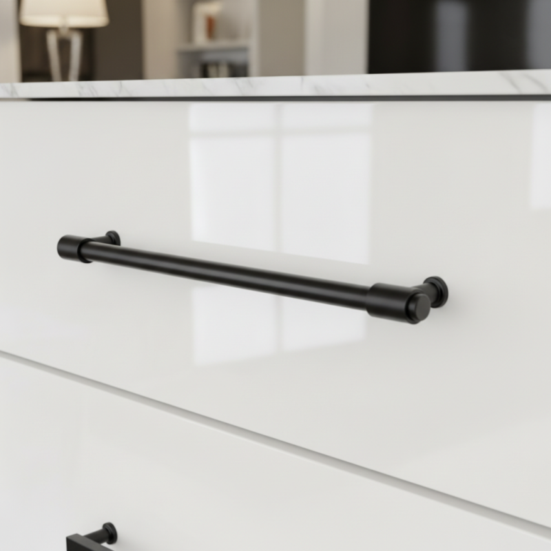 Úchytka je vyrobena z kvalitní slitiny, která zajišťuje vysokou pevnost, stabilitu a dlouhou životnost i při každodenním používání. Matná černá povrchová úprava působí sofistikovaně, je praktická na údržbu a odolná vůči běžnému opotřebení.
