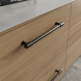 Nábytková úchytka TINA v moderním provedení černá matná je elegantním a nadčasovým doplňkem, který zvýrazní čisté linie moderního nábytku. Díky jednoduchému válcovému tvaru se skvěle hodí do minimalistických, industriálních i moderních interiérů.