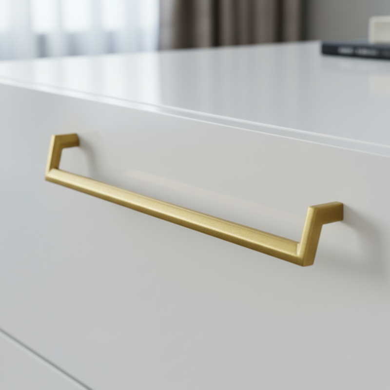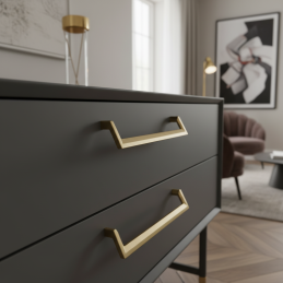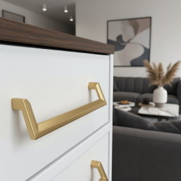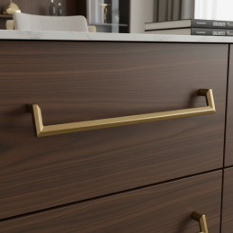 Matná zlatá barva vytváří teplý a sofistikovaný akcent, který krásně ladí se světlými i tmavými povrchy, dřevem, bílým lakem či minimalistickými dekoracemi. Tento typ úchytky je oblíbený při interiérových řešeních, kde je cílem dosáhnout prémiového, ale zároveň mírně decentního vzhledu.