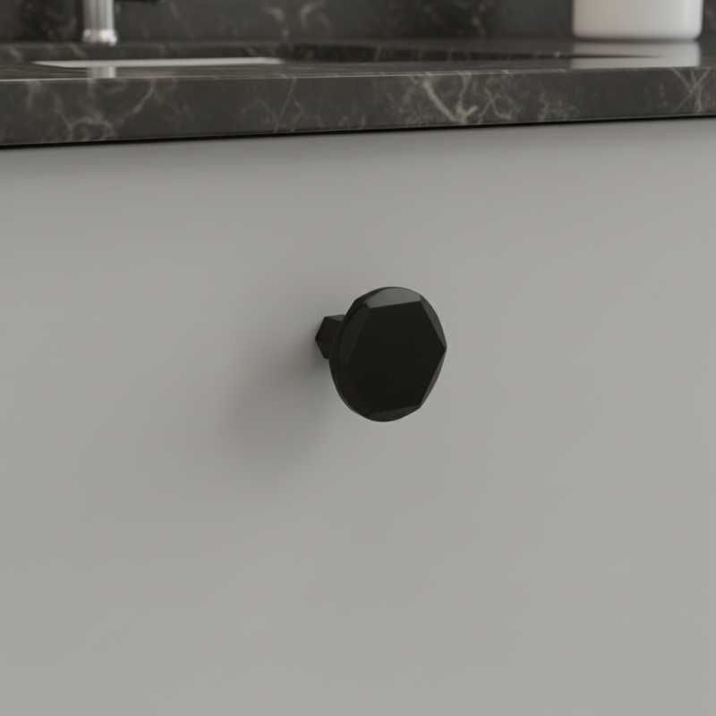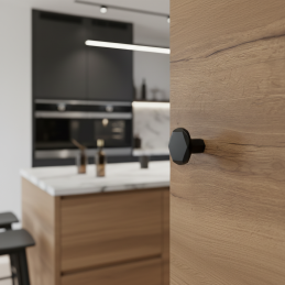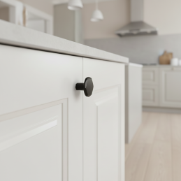 Knopka LAMEGO v černé matné úpravě je elegantním a moderním detailem, který dokonale doplňuje velké úchytky LAMEGO ve stejném designu. Její jemně fazetovaný tvar působí luxusně a zároveň nadčasově, díky čemuž se hodí do moderních, industriálních i minimalistických interiérů.