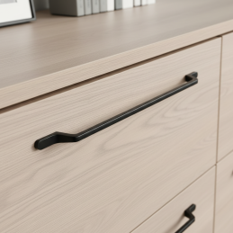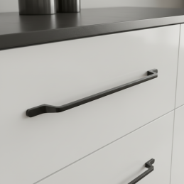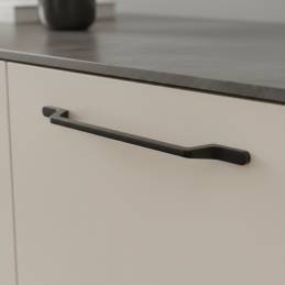 Úchytka ELIDA v černé matné úpravě je moderním a výrazně elegantním doplňkem pro současné interiéry. Její dlouhý, štíhlý tvar s jemným zalomením na koncích působí dynamicky a designově, přičemž zachovává čistý minimalistický charakter. Matná černá barva dodává úchytce sofistikovaný vzhled a vytváří atraktivní kontrast na světlém i tmavém nábytku.