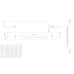 Rozteč 192 mm – celková délka 258 mm, šířka 12,6 mm, výška 26,8 ±1,5 mm