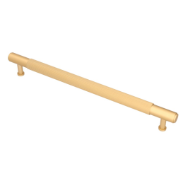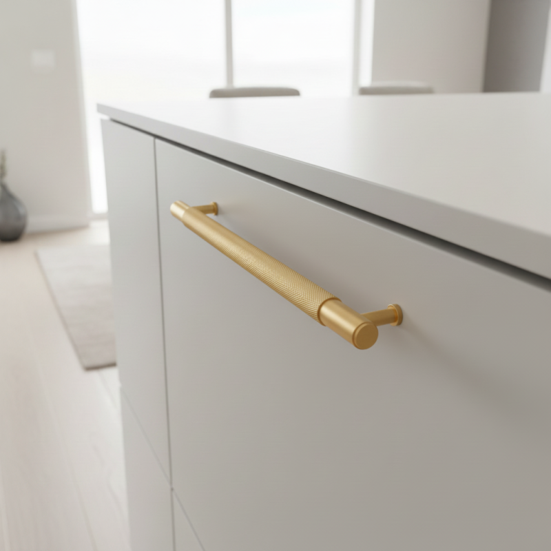 Úchytka LAYLA / Zlatá broušená je elegantní a luxusně působící designový prvek, který spojuje moderní industriální styl s teplým, sofistikovaným vzhledem broušeného zlata. Charakteristickým znakem úchytky je jemně rýhovaná (knurling) středová část, která dodává úchytce výrazný designový detail a zároveň zajišťuje komfortní a pevný úchop. Hladké koncovky vytvářejí harmonický kontrast a podtrhují precizní zpracování.