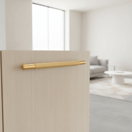 Úchytka LAYLA ve zlaté broušené úpravě je ideální volbou pro ty, kteří chtějí svému nábytku dodat luxusní, moderní a zároveň funkční detail. V kombinaci s knopkou LAYLA ve stejném provedení vytvoří jednotný a harmonický design celého interiéru.