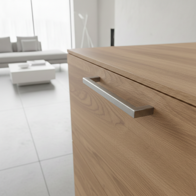 Úchytka SANA v nerezovém provedení je praktickým a stylovým detailem, který podtrhne čistý vzhled vašeho nábytku.