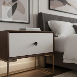 Tmavě hnědý odstín dodává nábytku hloubku a teplý akcent, přičemž se výborně kombinuje se dřevem, béžovými i tmavými dekory.