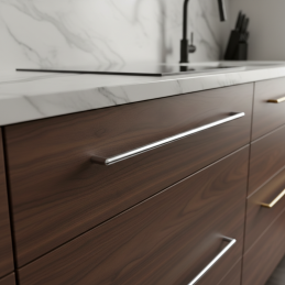 Nábytková úchytka ARENAL v provedení lesklý chrom je elegantním a výrazným doplňkem moderního interiéru. Vysoký lesk dodává nábytku luxusní vzhled a vytváří atraktivní kontrast zejména s tmavými, dřevěnými nebo matnými povrchy.