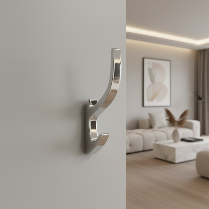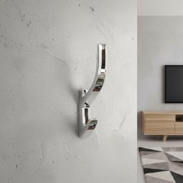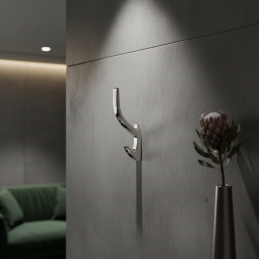 Elegantní a moderní věšák KOS v lesklém chromovém provedení působí luxusně a nadčasově. Díky svému čistému designu a jemnému lesku je ideální do moderních i klasických interiérů. Nabízí dva praktické háčky vhodné na odkládání oblečení, ručníků či doplňků.