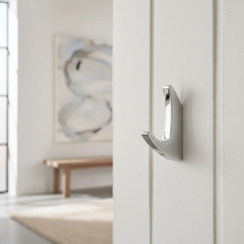 Elegantní a kompaktní věšák KOS Mini v lesklém chromovém provedení je skvělou volbou pro moderní interiéry, kde dominuje čistota, minimalismus a kovové akcenty. Povrchová úprava chrom lesklý dodává věšáku prémiový vzhled a vysokou odolnost proti opotřebení.