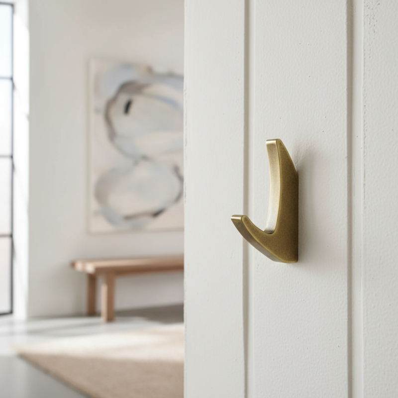 Elegantní a kompaktní věšák KOS Mini v nadčasové starozlaté povrchové úpravě je ideálním řešením pro předsíně, koupelny či šatny. Díky menšímu rozměru působí decentně, ale zároveň poskytuje dostatek prostoru pro odkládání oděvů či doplňků.