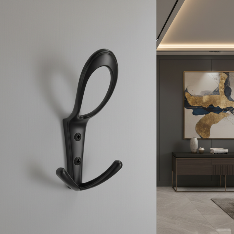 Elegantní a výrazný věšák BELAGO Maxi v provedení černá matná je moderním řešením pro stylové a funkční zavěšení oblečení. Jeho prodloužený, plynule tvarovaný design působí lehce a elegantně, zároveň však nabízí vysokou praktičnost díky spodnímu dvojitému háčku.