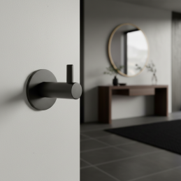 Elegantní nástěnný věšák MAGDA v moderním provedení antracit tmavý zaujme čistým, technickým designem a kompaktními rozměry. Válcový tvar v kombinaci s krátkým horním háčkem působí minimalisticky a nadčasově, díky čemuž se věšák snadno začlení do moderních, industriálních i loftových interiérů.