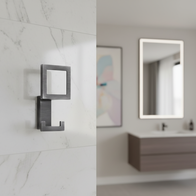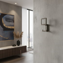 Věšák je vyroben z kvalitního kovu s broušenou povrchovou úpravou v černé barvě, která je odolná proti opotřebení a zároveň příjemná na dotek.