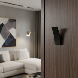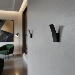 Moderní designový věšák, který může zároveň sloužit i jako nábytková úchytka – knopka. Díky kompaktním rozměrům a jemně zakřivenému tvaru je ideální pro minimalistické a moderní interiéry. Vhodný je na skříňky, zásuvky, šatníky i stěny v obytných či komerčních prostorech.