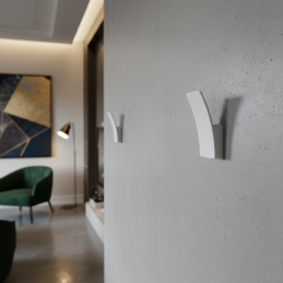 Věšák je vhodný k použití na nábytku, skříňkách, zásuvkách, šatnících nebo jako jednoduchý věšák na stěnu. Matná bílá povrchová úprava působí elegantně, neutrálně a snadno se kombinuje s různými materiály a barevnými řešeními interiéru.
