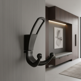 Moderní věšák LAMAR v elegantním provedení černá matná je praktickým a designově čistým doplňkem do současných interiérů. Minimalistické linie, ergonomický tvar a matná povrchová úprava zaručují nadčasový vzhled a snadné kombinování s nábytkem i interiérovými doplňky.