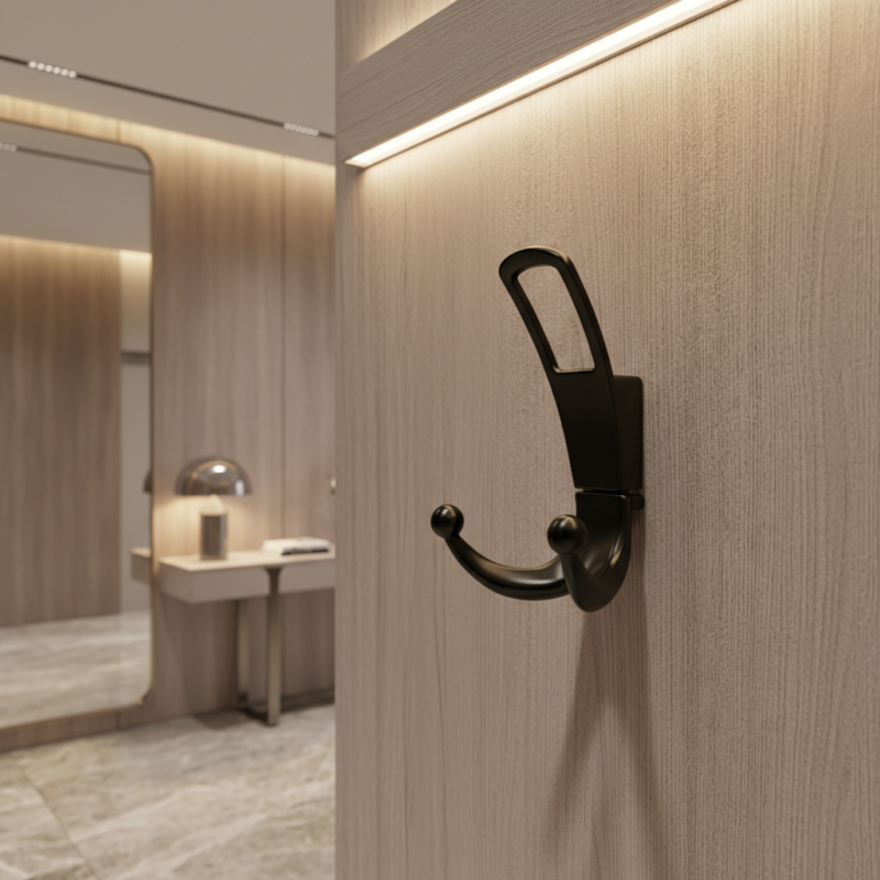 Věšák LAMAR v černé matné barvě je ideální volbou pro zákazníky, kteří hledají spojení moderního designu, funkčnosti a odolnosti.