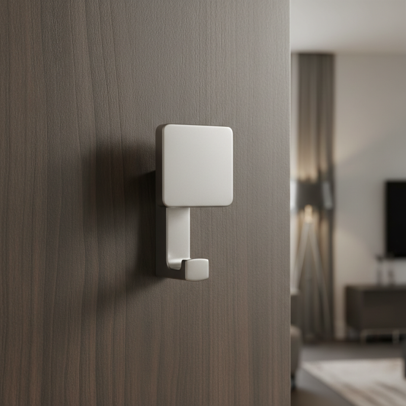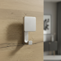 Montáž je řešena ze zadní strany stěny, desky nebo nábytku pomocí dvou šroubů, díky čemuž zůstává upevnění skryté a design věšáku čistý a nerušivý.
