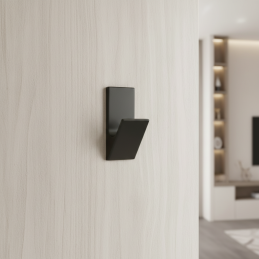 Moderní designový věšák TERZA v provedení černá matná je výrazným a zároveň elegantním doplňkem do moderních i industriálních interiérů. Jeho geometrický tvar se šikmou linií působí dynamicky a současně poskytuje spolehlivý prostor pro zavěšení oděvů či doplňků.