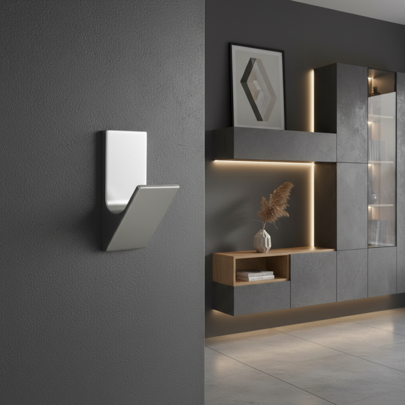 Věšák TERZA je vhodný do předsíní, šaten, koupelen i na nábytek a vynikne jako samostatný designový detail i v kombinaci více kusů.