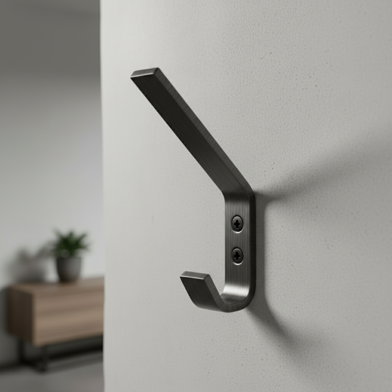 Designový nástěnný věšák s přední montáží pomocí šroubů v barvě shodné s barvou věšáku
