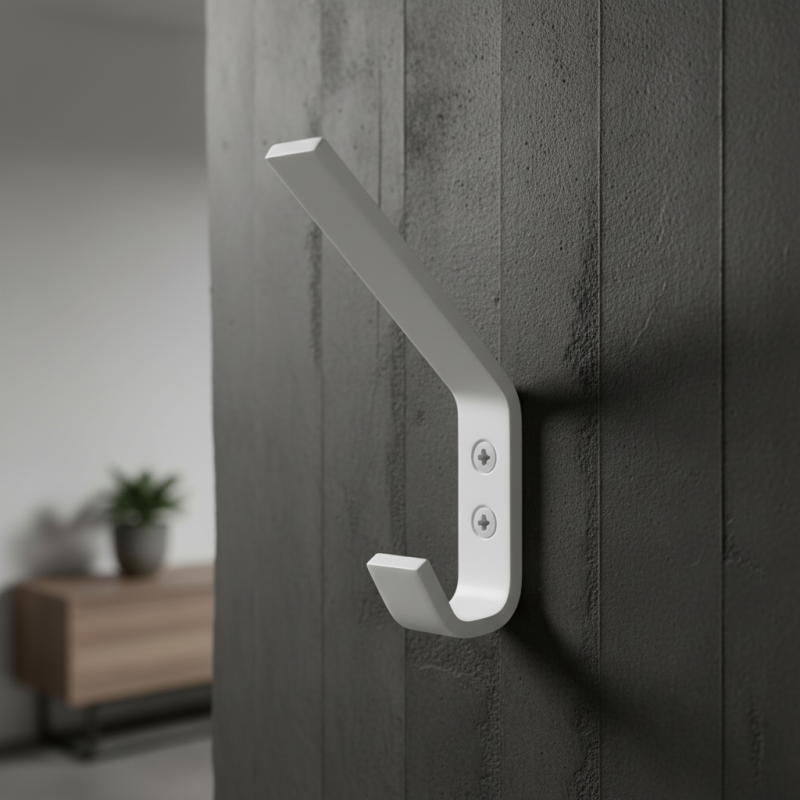 Designový nástěnný věšák s přední montáží pomocí šroubů v barvě shodné s barvou věšáku