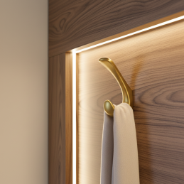Luxusní a moderní věšák MANAL v povrchové úpravě zlatá broušená dodá každému interiéru elegantní, prémiový a sofistikovaný vzhled.