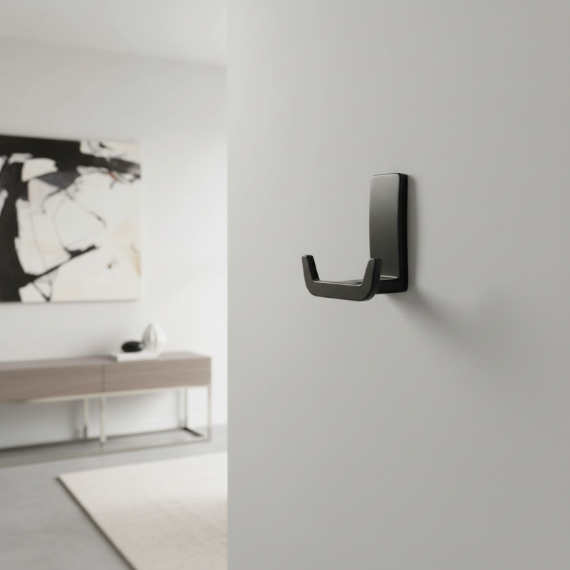 Elegantní a kompaktní věšák TANIA L v povrchové úpravě černá matná je stylovým doplňkem pro moderní interiéry. Minimalistický tvar, pevná kovová konstrukce a jemné matné provedení z něj dělají ideální volbu do předsíně, koupelny, kuchyně či kanceláře.