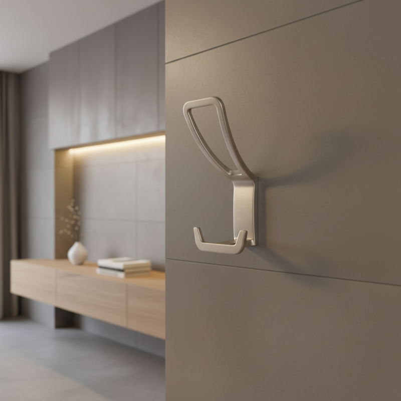 Elegantní a moderní věšák TANIA XL v povrchové úpravě nikl broušený přináší do interiéru nadčasový vzhled a prémiový charakter. Díky čistým liniím a jemně broušenému kovovému povrchu působí luxusně, ale zároveň zůstává mimořádně praktický.