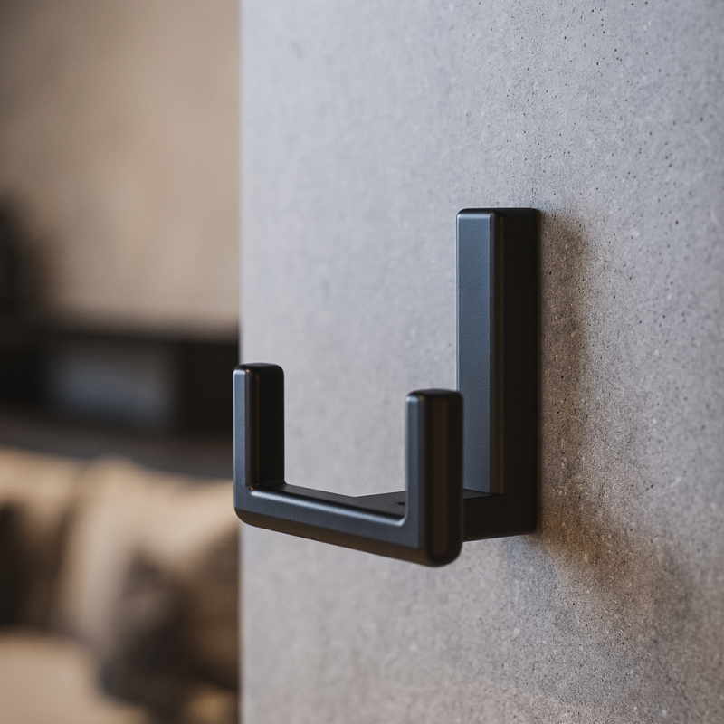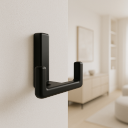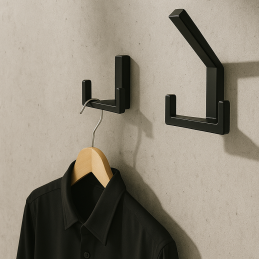 Věšák je vybaven dvěma pevnými háčky, které umožňují zavěšení více předmětů najednou – kabátů, bund, kabelek, klíčů či ručníků.