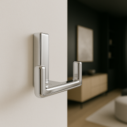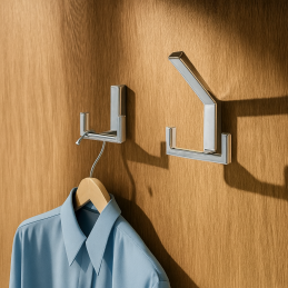 Věšák je vybaven dvěma pevnými háčky, které umožňují zavěšení více předmětů najednou – kabátů, bund, kabelek, klíčů či ručníků.