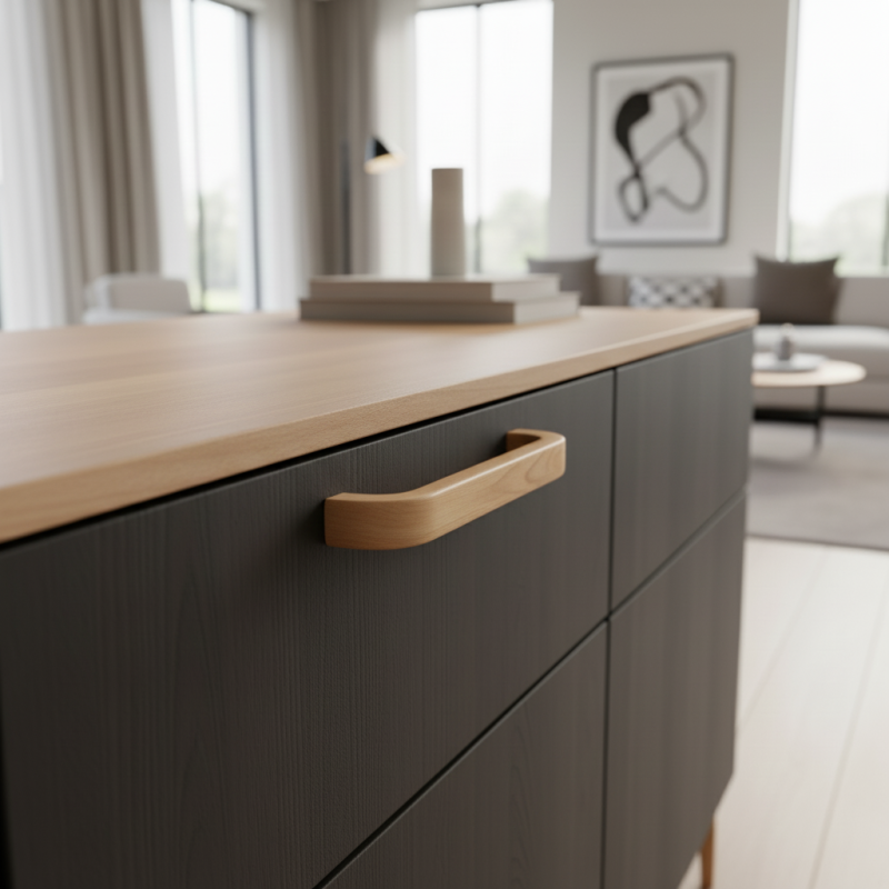 Zaoblené linie úchytky poskytují příjemný úchop a působí moderně i přírodně zároveň.