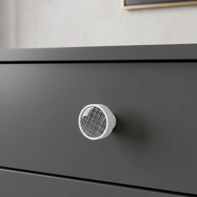 Dřevěná úchytka ARSIA v bílém provedení s moderním černo-bílým motivem mřížky je stylovým doplňkem, který vynikne v moderních, skandinávských i minimalistických interiérech. Kombinace masivního bukového dřeva, kvalitního bílého laku a výrazného geometrického vzoru dodává nábytku originální, designový charakter.