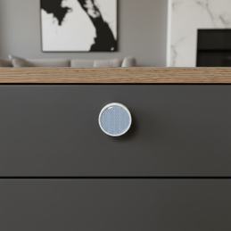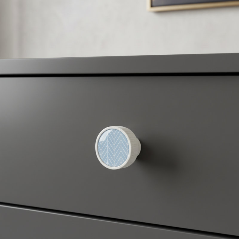 Dřevěná úchytka ARSIA v matném bílém provedení s motivem modré jedle je stylovým doplňkem, který do interiéru vnáší čistotu, jemnost a přírodní eleganci. Vyrobená z masivního bukového dřeva a lakovaná do kvalitního bílého povrchu působí moderně a nadčasově, zatímco modrý stromový vzor přidává nábytku svěží dekorativní akcent.