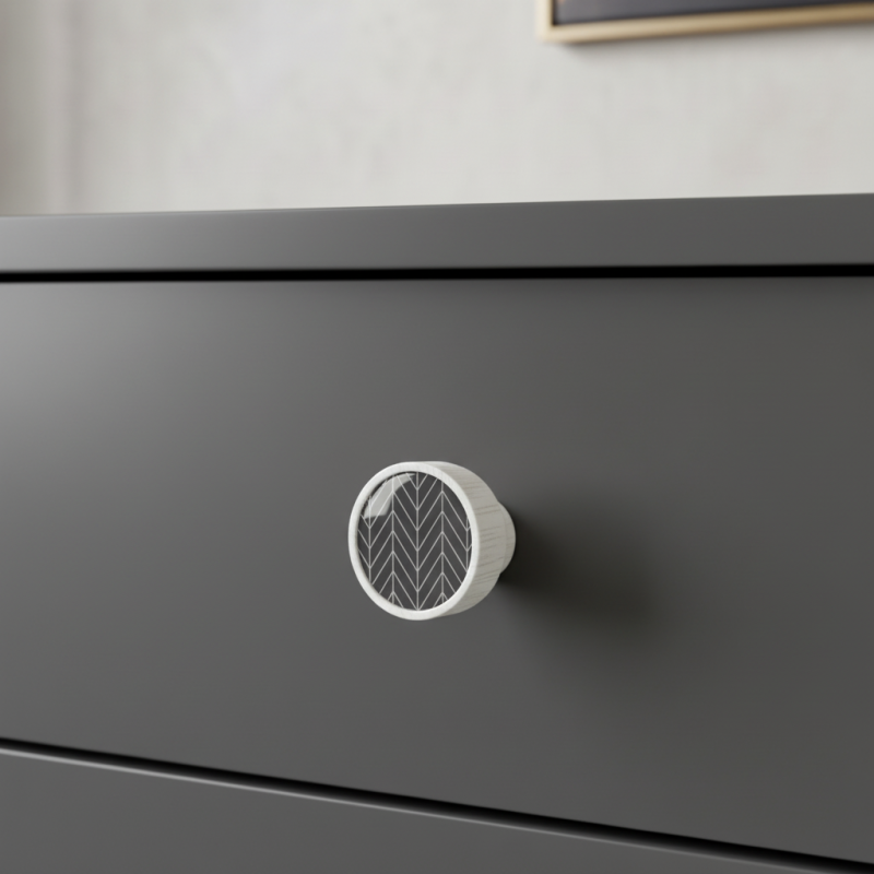 Dřevěná úchytka ARSIA v bílém provedení s motivem šedé jedle je moderním a elegantním doplňkem, který do interiéru přináší jemnost, čistotu a přírodní nádech. Kombinace masivního bukového dřeva a odolného bílého laku působí nadčasově, zatímco minimalistický stromový motiv v šedém odstínu dodává úchytce stylový, skandinávský charakter.