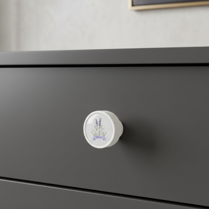 Dřevěná úchytka ARSIA v bílém provedení s jemným motivem levandule přináší do interiéru nádech romantiky, klidu a francouzského Provence. Vyrobená z masivního bukového dřeva, lakovaná do elegantní bílé barvy a doplněná akvarelovým vzorem levandule působí mimořádně harmonicky a stylově.