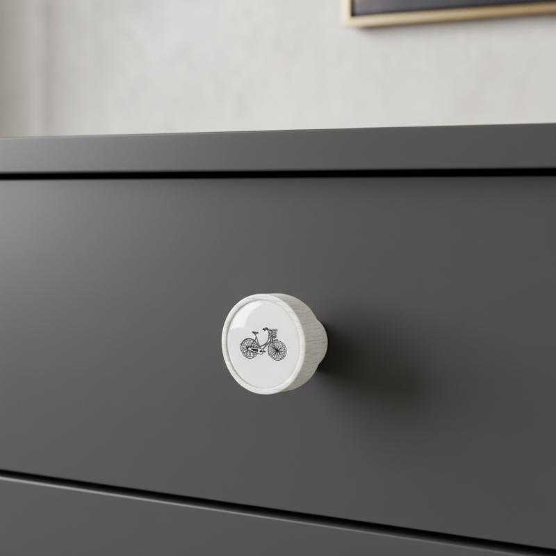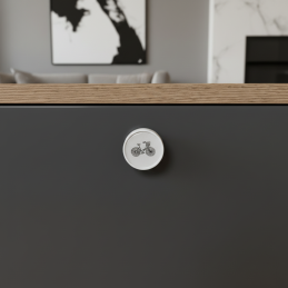 Dřevěná úchytka ARSIA v elegantním bílém provedení s motivem kola je stylovým a originálním doplňkem pro nábytek v moderních, dětských či retro interiérech. Masivní bukové dřevo je lakované do hladké bílé barvy a doplněné detailní grafikou kola, která působí hravě, nostalgicky a dodá nábytku jedinečný charakter.