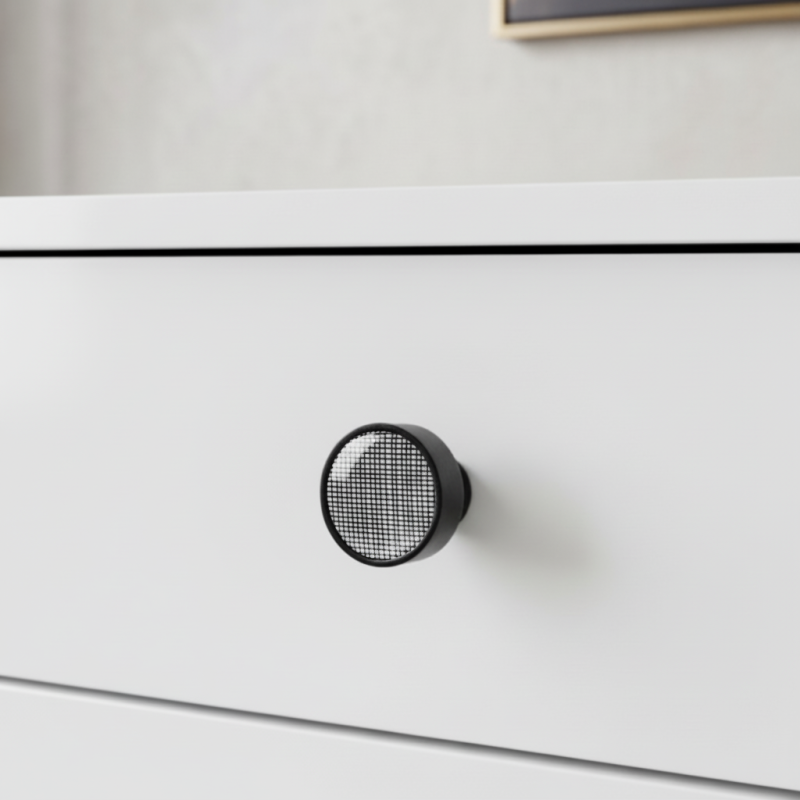 Dřevěná úchytka ARSIA s motivem mřížky přináší moderní geometrický styl, který dokonale doplní minimalistický, skandinávský či industriální interiér. Vyrobena je z masivního bukového dřeva, povrch je lakovaný pro vyšší odolnost a černý design doplňuje jemný bílo-černý vzor mřížky, který působí elegantně a zároveň nadčasově.
