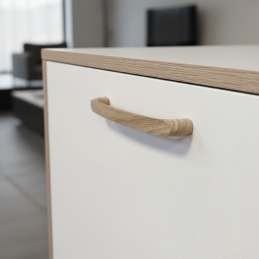 Dřevěná úchytka CALCATA v provedení dub přírodní je elegantním doplňkem nábytku, který spojuje moderní design s autentickou krásou masivního dřeva. Její tvar je jemně zaoblený a ergonomický, což zajišťuje příjemné a pohodlné uchopení při každodenním používání. Dubové dřevo se svou přirozenou kresbou dodá interiéru teplo, harmonii a nadčasový vzhled.