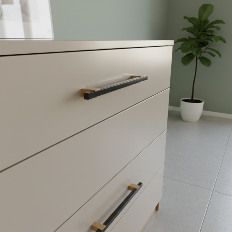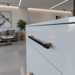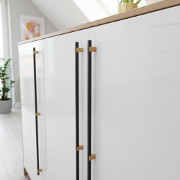 Designová rukojeť z přírodního dřeva s lakovanou povrchovou úpravou. Lze kombinovat i s knoflíky ve stejném designu.