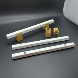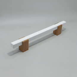 Úchytka je vyrobena celá ze dřeva – středová část má odolnou bílou matnou povrchovou úpravu a konce jsou z přírodního dubového masivu, jemně lakované pro dlouhou životnost.