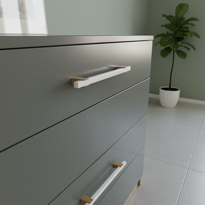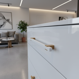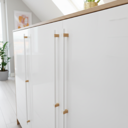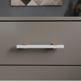 Moderní dřevěná úchytka LEO kombinuje přírodní dub s elegantním matným bílým středovým profilem. Vzniká tak čistý, minimalistický design, který perfektně zapadne do skandinávských, moderních i dětských interiérů.